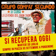 Il concerto di Grupo Compay Segundo, originariamente in programma a Pordenone ieri, luned 29 luglio, non si potuto svolgere per le avverse condizioni meteo, ma VERR RECUPERATO OGGI, marted 30 luglio, sempre in Piazza XX Settembre a Pordenone con inizio alle 21:30.