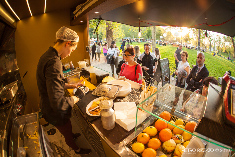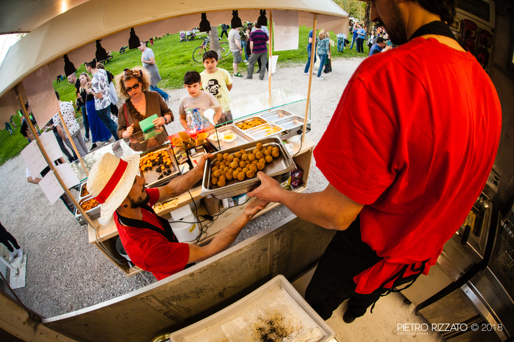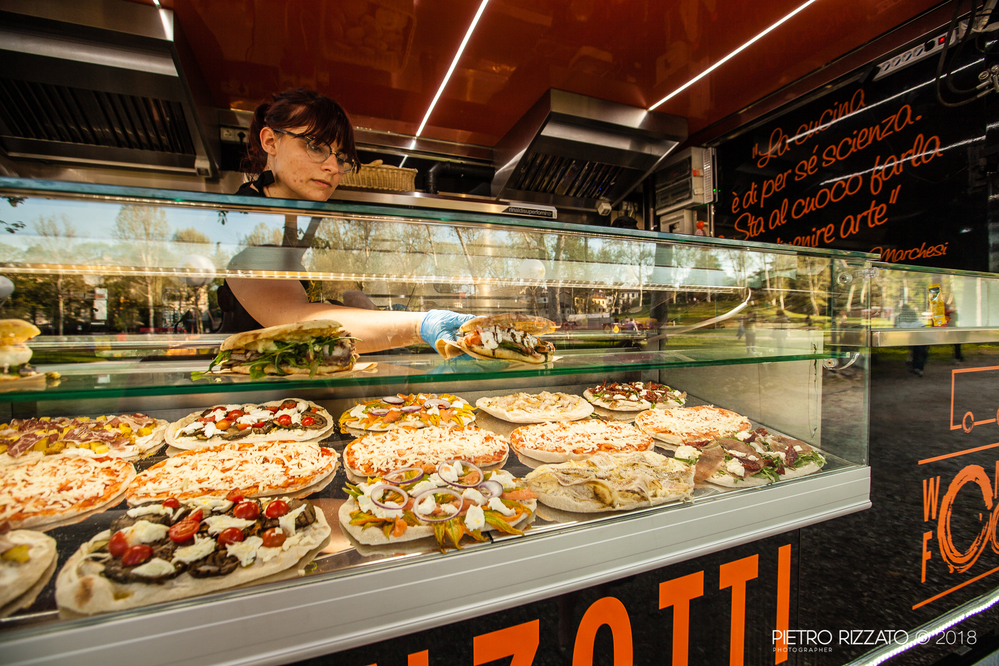 Tantissimi cibi di strada provenienti da tutto il Bel Paese e proposti da ape car, carretti, furgoncini, biciclette, roulotte, moto e rimorchi allestiti con piastre, forni, friggitrici, bollitori e griglie.